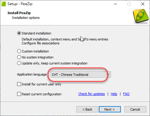在安裝過程中,記得也可以選一下語言為 CHT,繁體中文。
