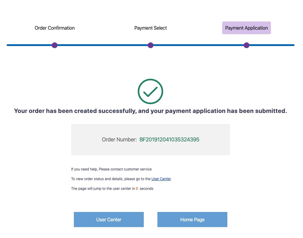 結帳後你可以等大約十分鐘後再去 UserCenter 就好,因為不會那麼快完成訂單。