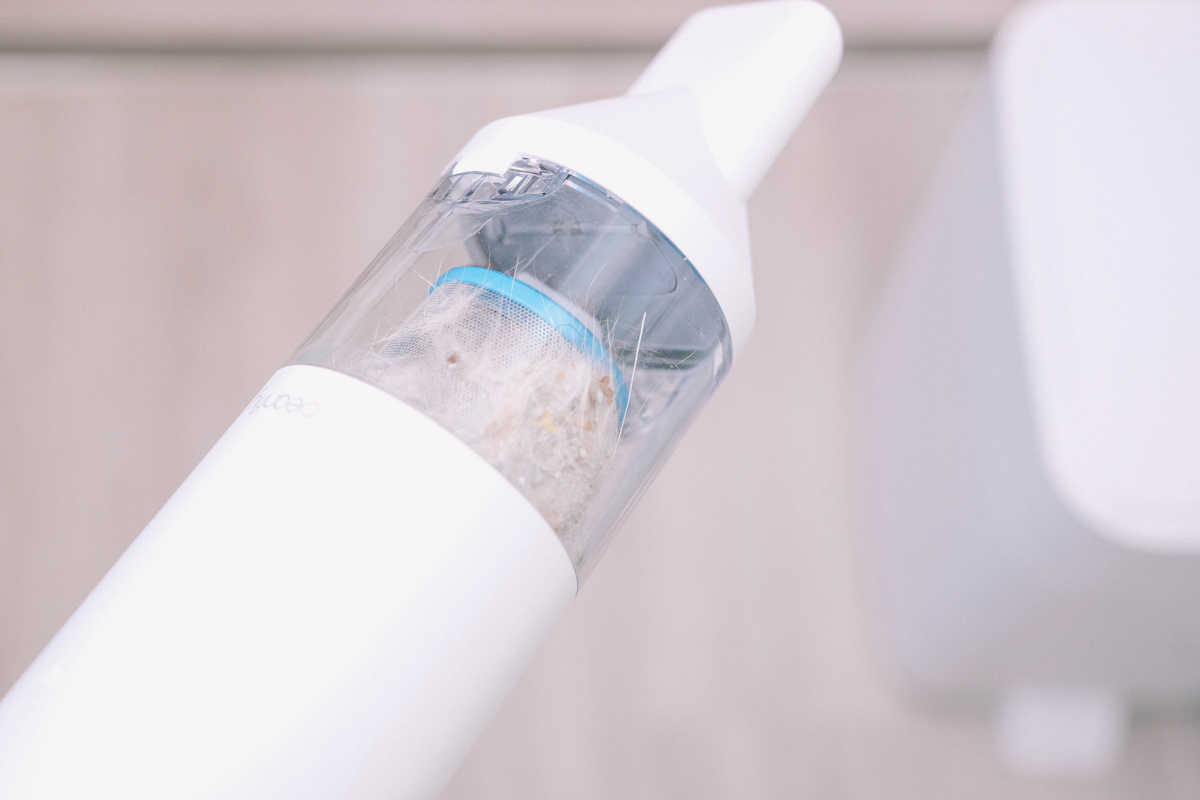隨便打掃個 10 分鐘,又吸到了一堆垃圾跟灰塵,清蜓 FV2 無線吸塵器的集塵桶為 0.2L,以便攜式的來說,容量算大了。