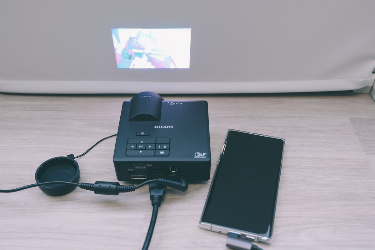 以「微」投影機來說,僅一個手掌大小又有高達 600 流明的亮度,這樣的機型可以說是五根手指頭數的出來,大家可以去搜看看,大型的投影機都在 3000 流明以上,中型約 1000~2000 流明,微型的很多都在 500 流明以下,所以 RICOH 這個的亮度剛好是用於一般使用非常夠用,提供的 I/O 連接埠也非常夠,如果你想要直接無線投影,也可以考慮買個 Chromecast,就能直接用手機投影畫面,像阿湯平常在用的 Samsung Galaxy Note10+ 及 HUAWEI P30 Pro,只要透過 HDMI 接上後,還會有專門的桌面介面可以使用,就變成了一台小電腦,可以直接播放影片、操作簡報等,所以投影機以外接內容進行播放是阿湯比較推薦的,別被內建 Android 給吸引了,等過了二年變成不更新的孤兒你就不會這樣想了。