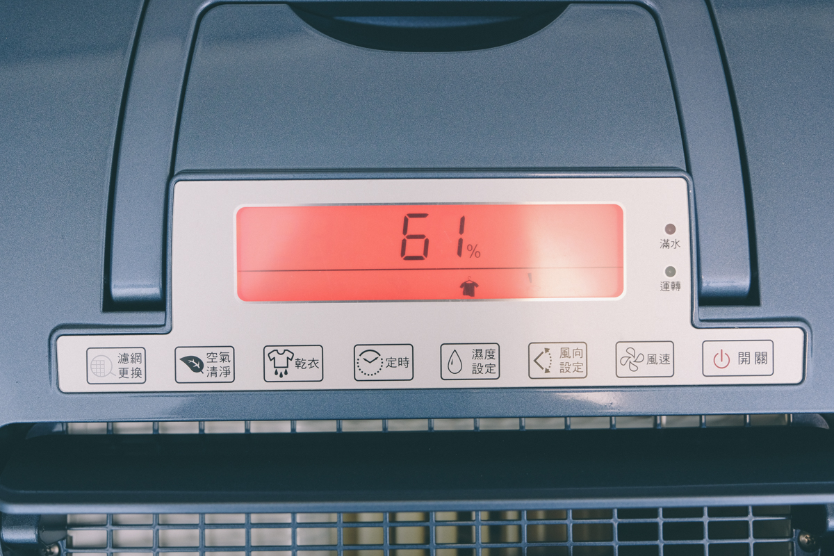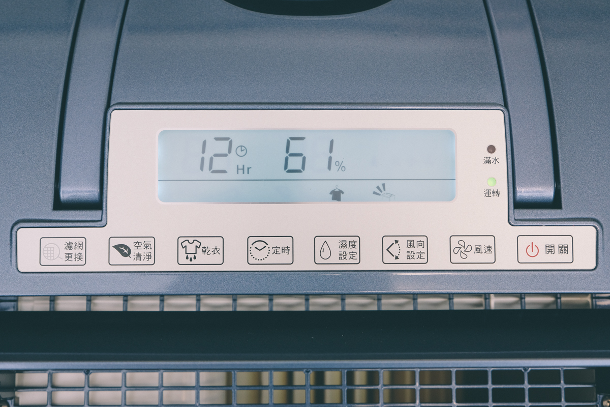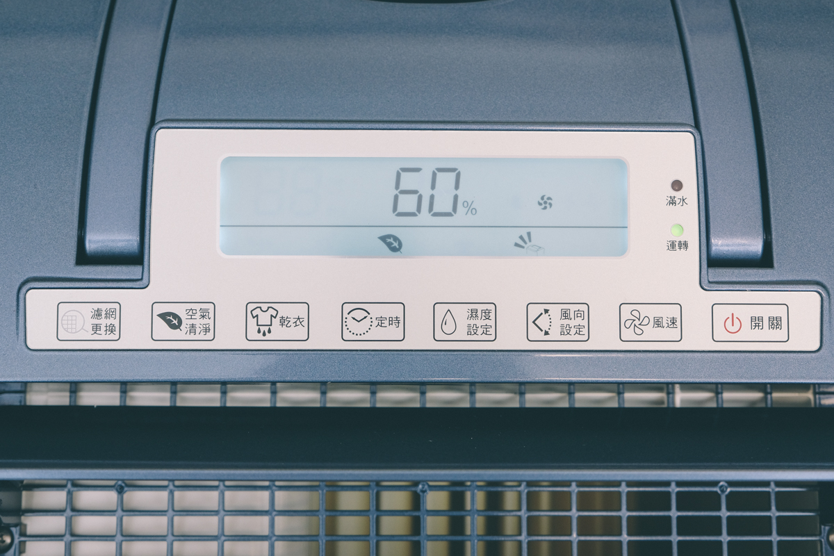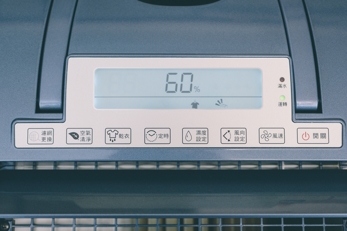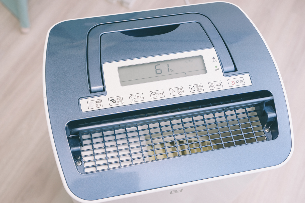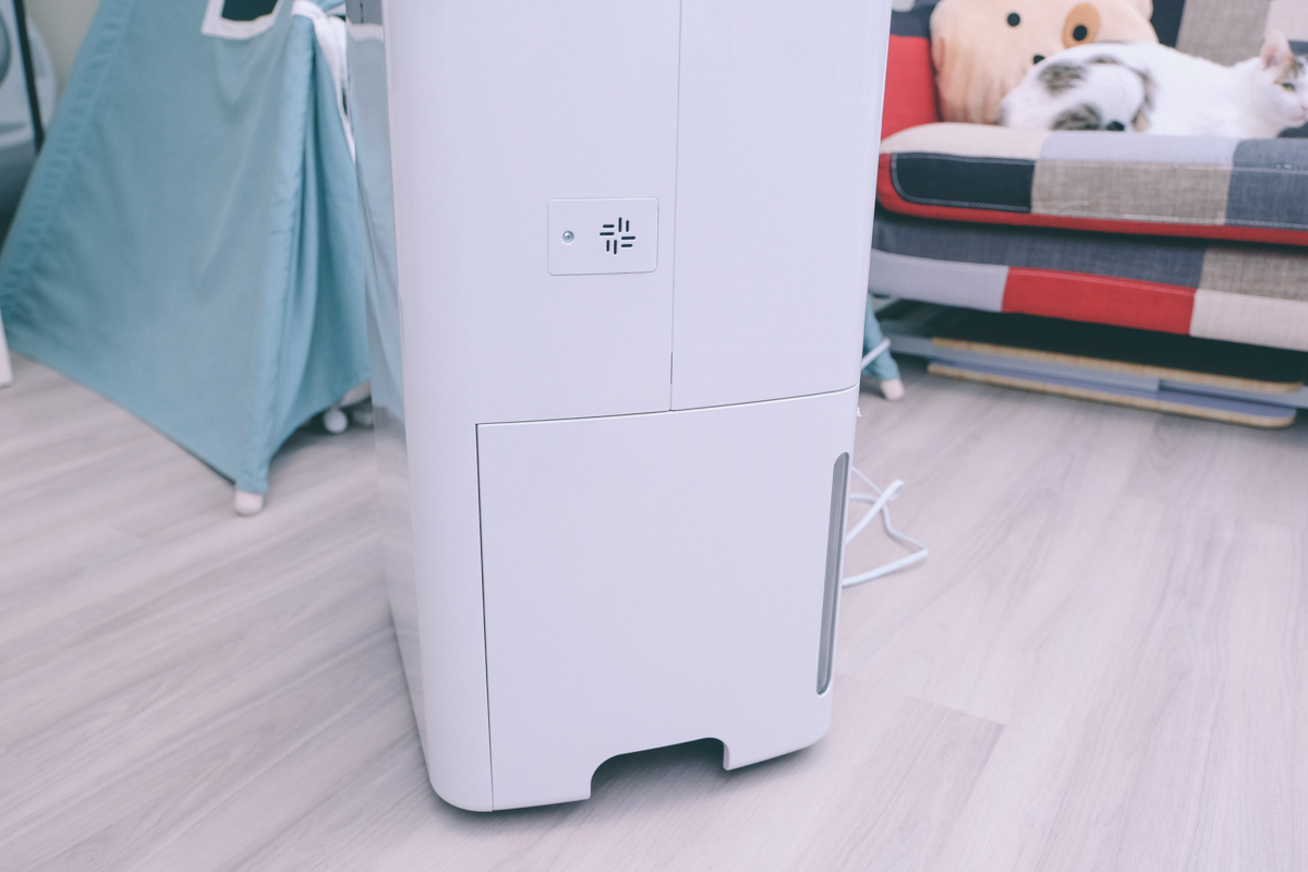 進氣口的部份加上了一層 HEPA 等級的濾網,除濕的同時也能進行空氣清淨,當濾網使用累積達 2,160 小時也會亮起濾網更換提醒燈,這時會停止運作,如果更換完畢只要再長按濾網更換鍵三秒就可以繼續使用(重新計時的意思)。