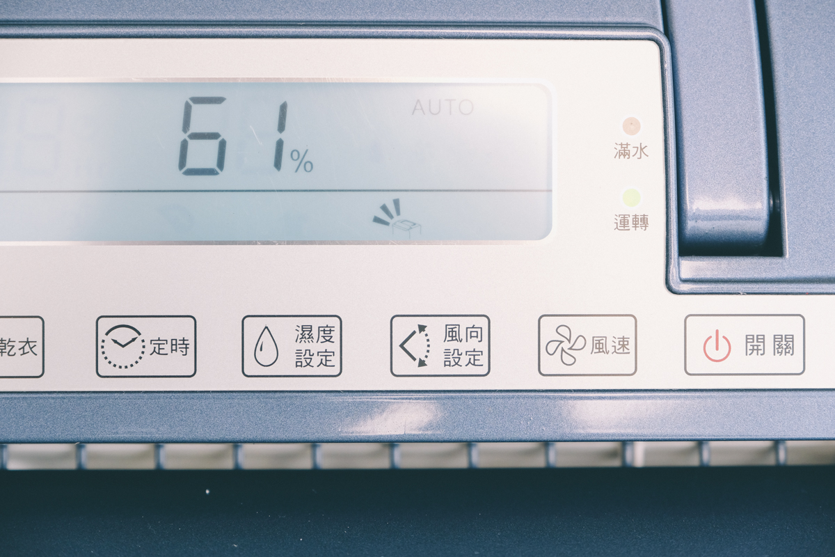 濕度可以設定的範圍為 40%~70%,風速設定的部份一共有三段,大家最在意的就是除濕機的噪音值,阿湯曾經買過某 W 牌的除濕機,以為除濕機聲音應該就大同小異吧,沒想到買回來開下去即便是最低速運轉還是像一台戰車在耳邊轟轟轟的,真的受不了,馬上就退貨了。