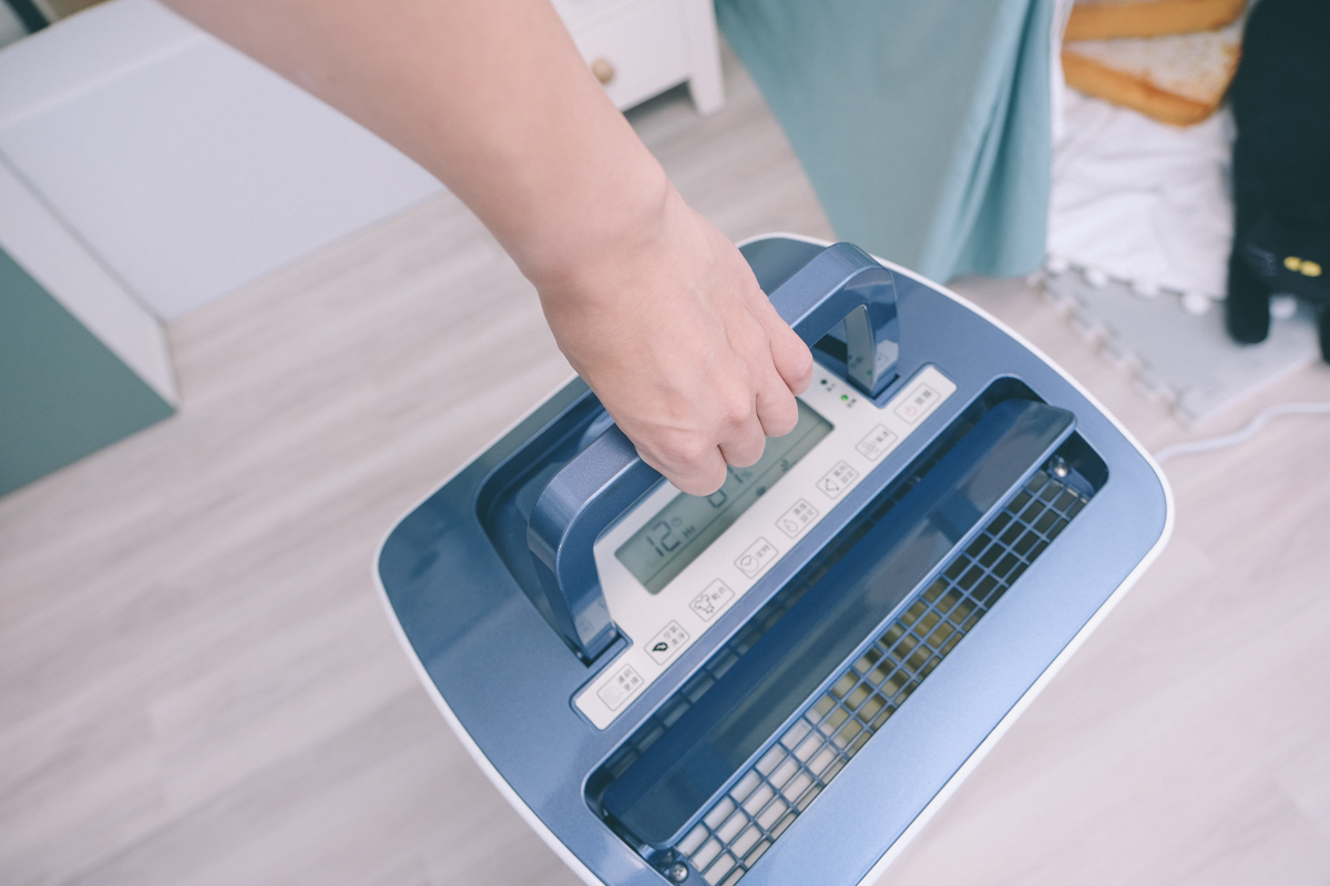 水箱的部份從側邊抽出後也有提把方便你提走去倒掉除濕的水,有些除濕機的提把設計很淺,並沒有很方便提握。