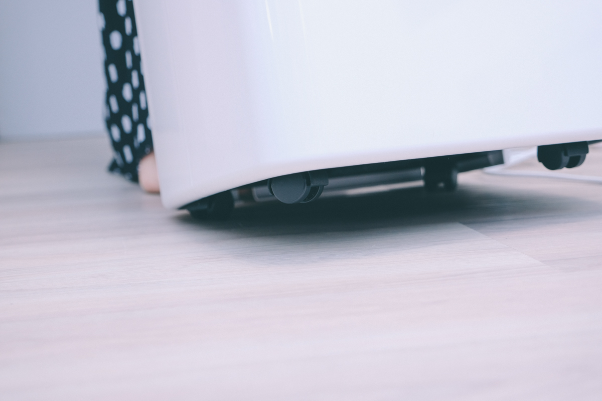 底部也有萬向輪設計,讓你隨時可以在各個房間或區域之間移動使用,不然一間放一台除濕機是有點佔空間啊,像我們家那麼小。