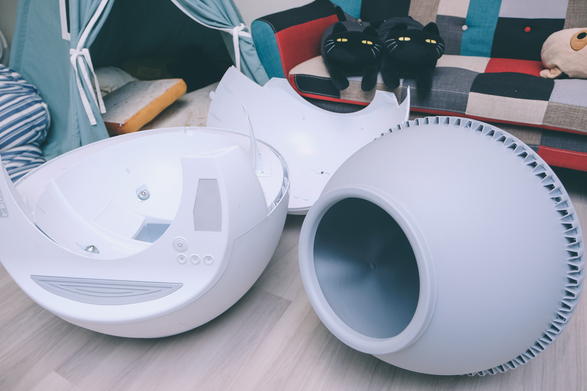 喵星人太空艙,然後再調整,至少體積比起喵星人太空艙小一些,長相跟設計也更好看一些,上一台 Petree 自動貓砂機基本上收到時做工品質覺得一般般,MEET 算是比 Petree 的做工品質好上不少。