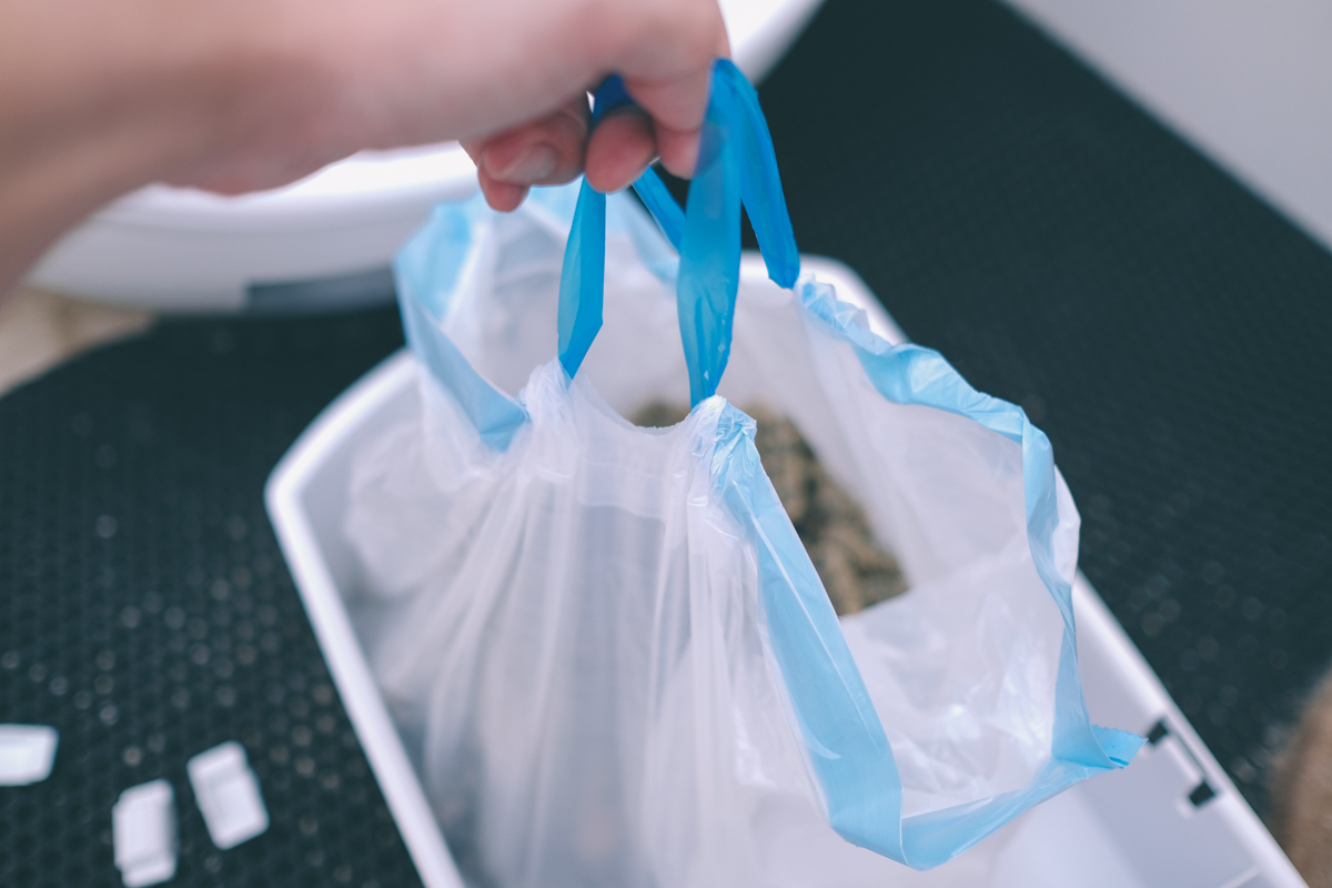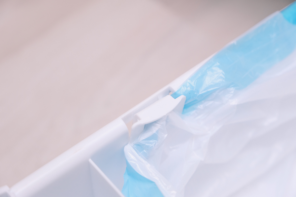 你可以用自己的垃圾袋也可以用專用的,他們的專用垃圾袋有拉繩,只要從二側拉起來就可以綁一綁拿去丟掉了。