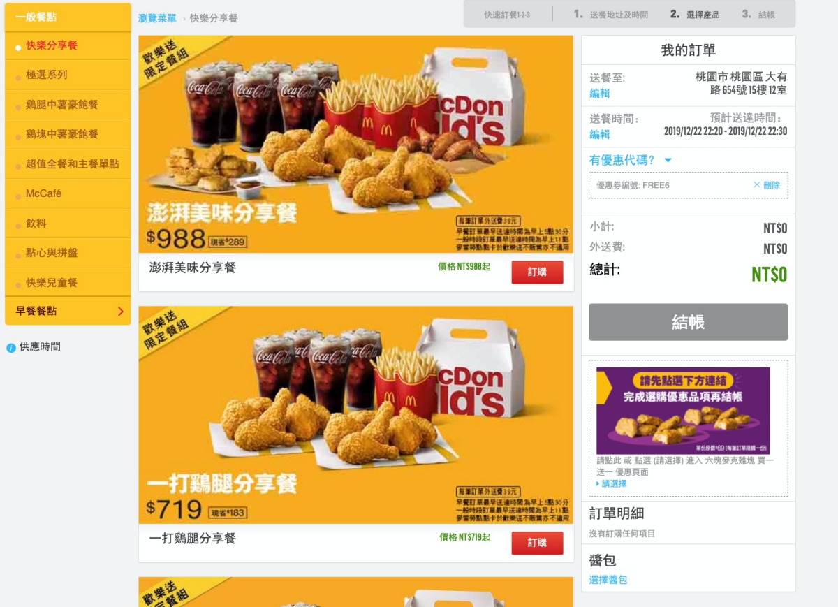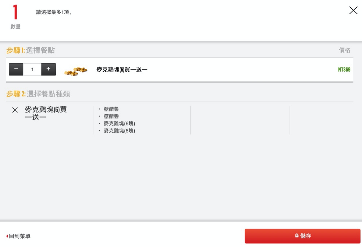 麥當勞網路訂餐六塊麥克鷄塊買一送一