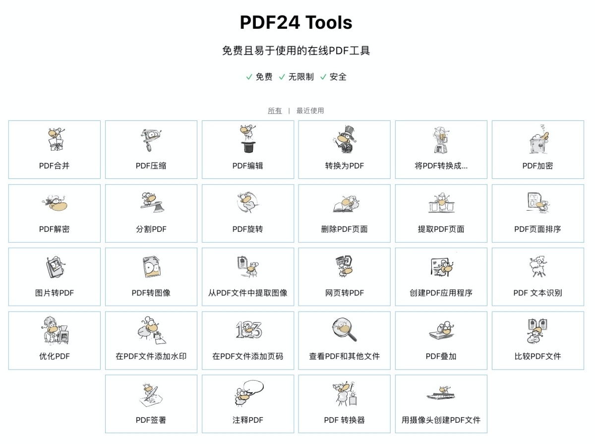 這個網站目前一共有 28 款線上 PDF 工具可以用,雖然是簡體中文,但不影響任何功能,如果你的 PDF 內容是繁體中文也沒有問題,不會因此造成轉檔錯誤或是亂碼。