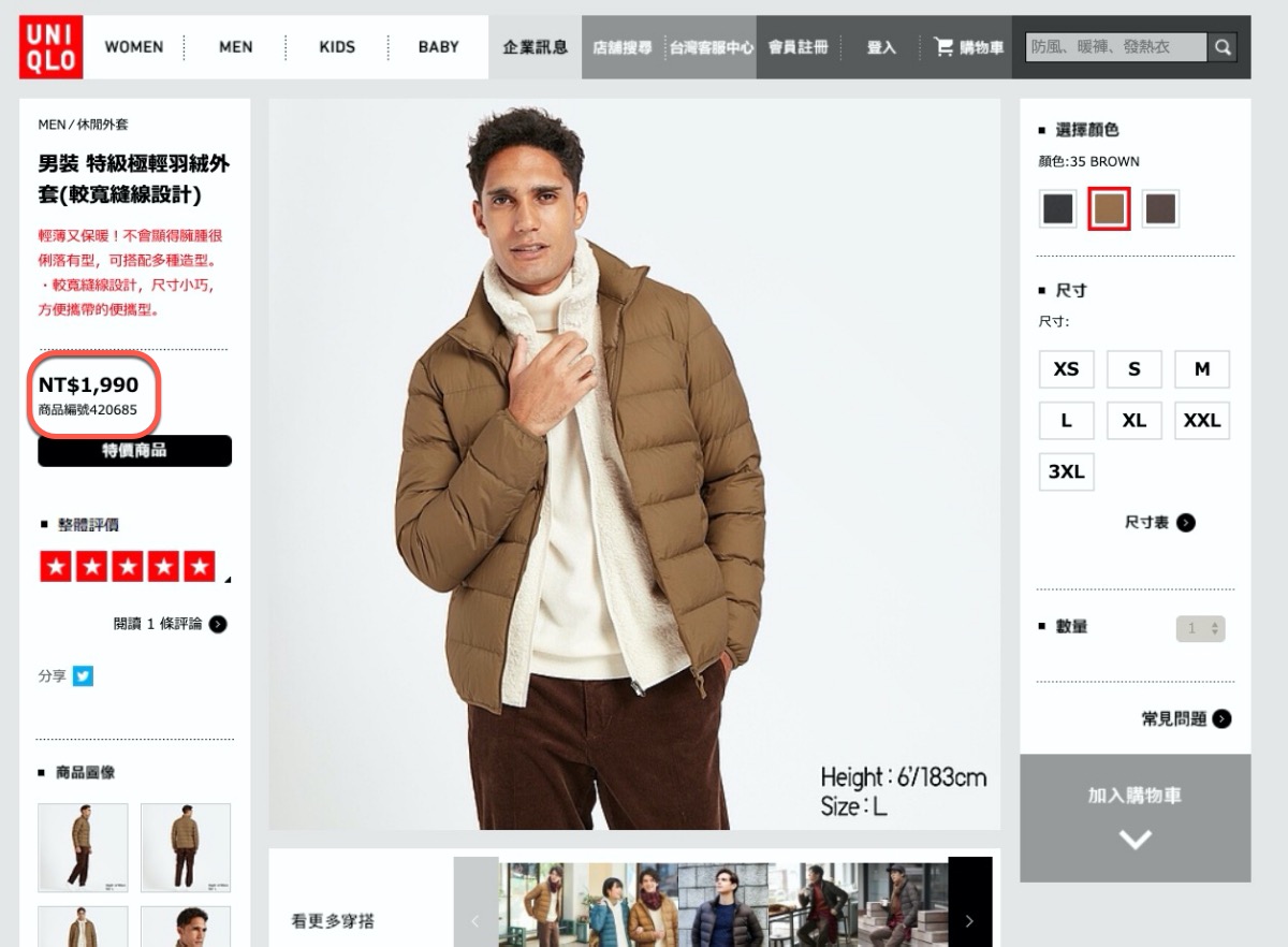 在 UNIQLO 的線上商店,每一個商品的左邊價格處都會有個商品編號,將他複製下來。