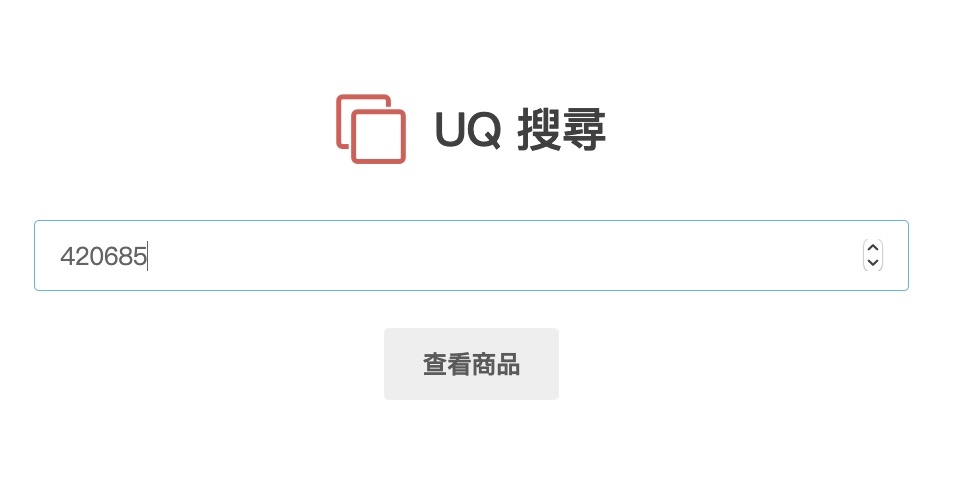 UQ 搜尋器:請點我前往使用很簡單,只有一個搜尋框,就是用來輸入商品編號用的,這個商品編號如果是在實體商店的話,衣服上的標籤通常都會有,如果你是逛線上商店,我們往下來看。