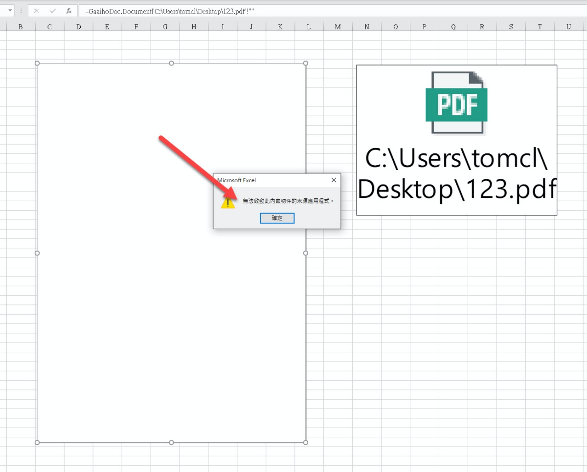 Excel 教學 - 內嵌的 PDF 出現「無法啟動內嵌物件的來源應用程式」