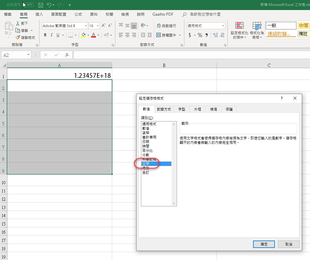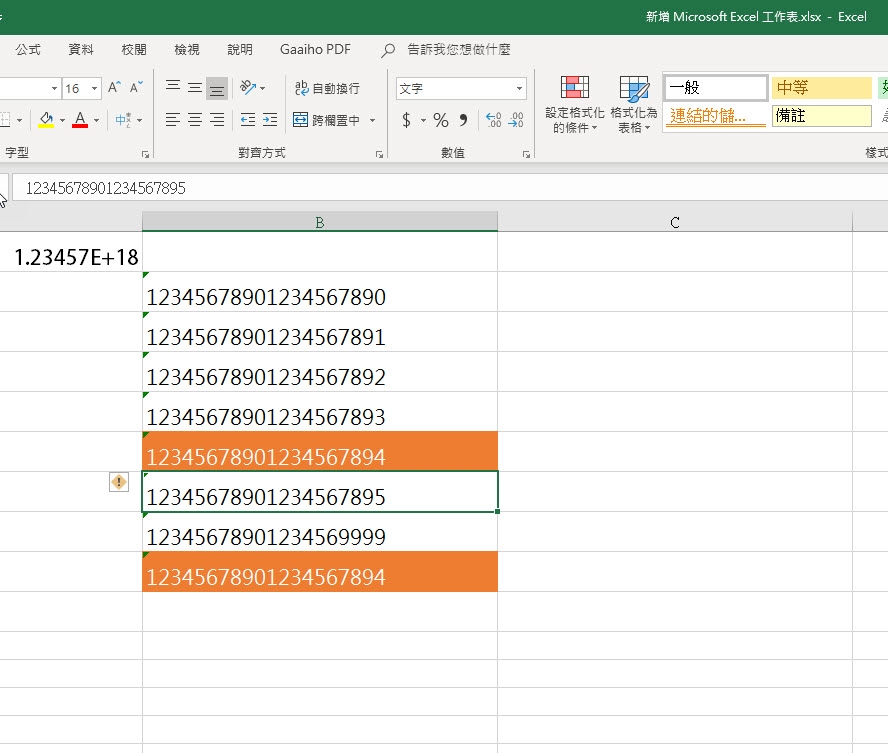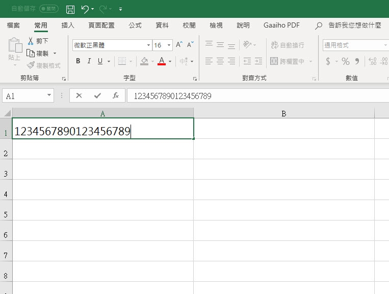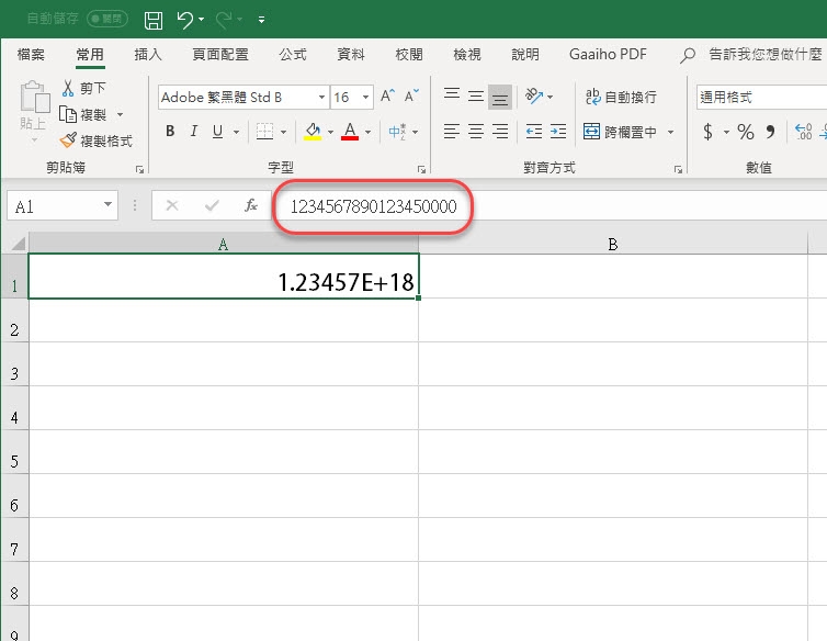 先給大家看一下超過 15 個數字,比如在不設定任何格式下,輸入任意超過 15 位的數字,往下來看。
