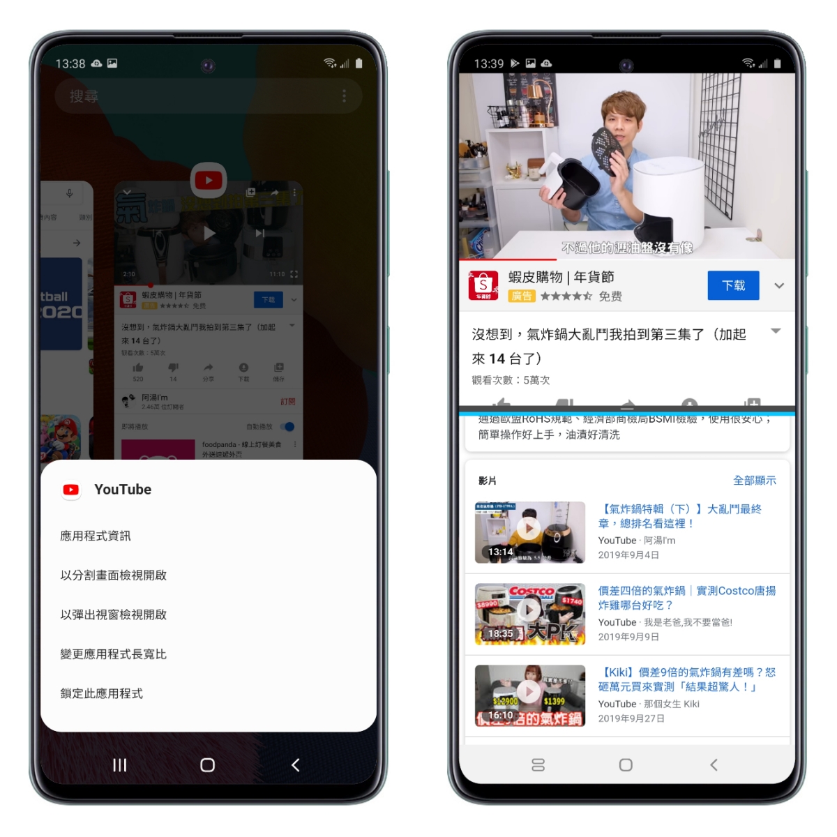 支援多重視窗瀏覽,只要按下多工按鍵後就可以在想要開啟雙視窗的 APP 圖示點擊,然後選擇分割視窗,再去選擇第二視窗想開啟的 APP 即可,可以同時邊看影片邊搜尋資料,或是和朋友討論等,是非常便利的功能之一。