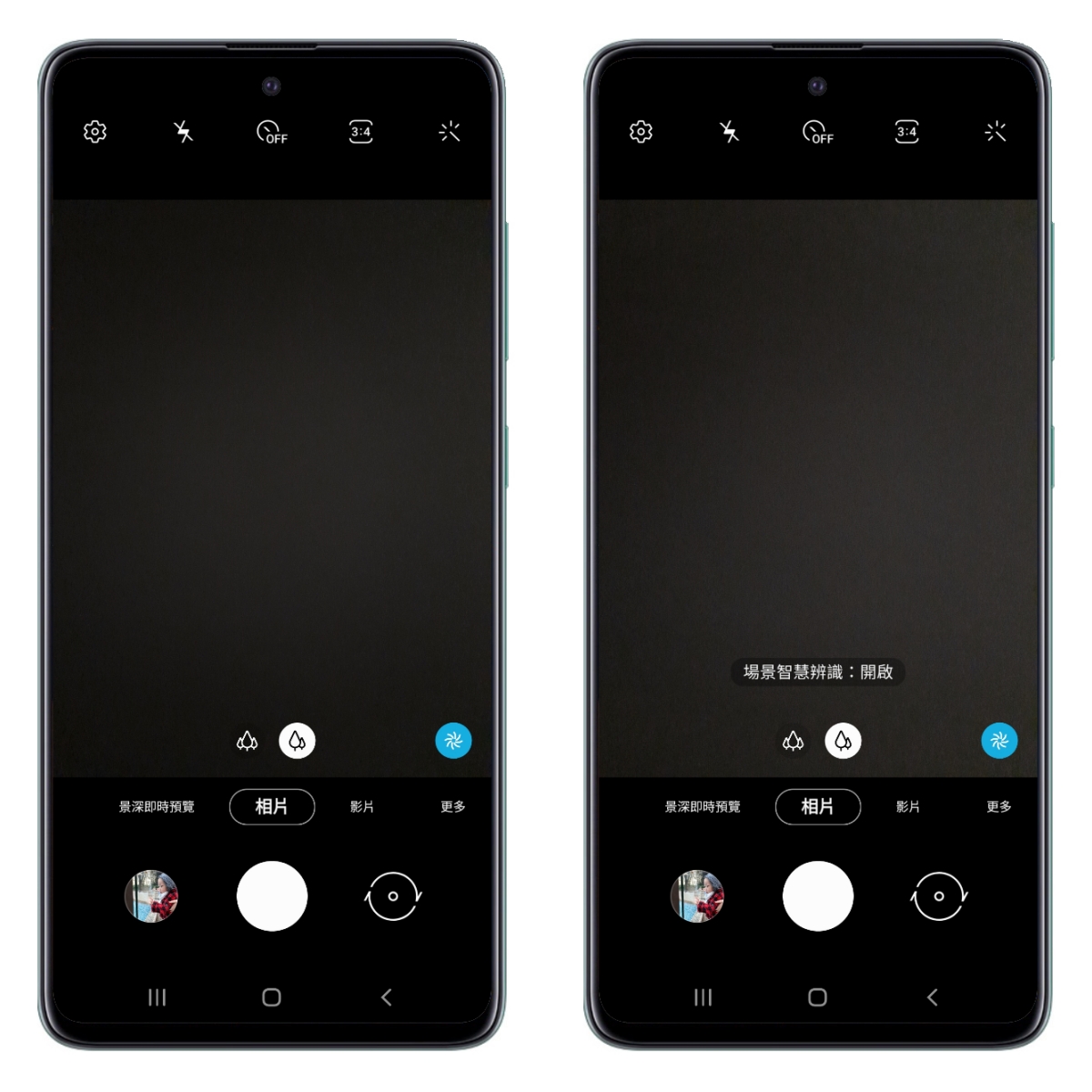 另外在前鏡頭的部份支援的模式也同樣一個不少,影片拍攝的部份不論前後鏡頭都有支援手繪動態攝影功能,這個在先前的 Galaxy Note10+ 功能中就有看過。