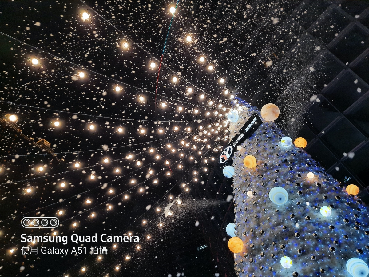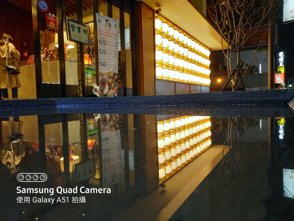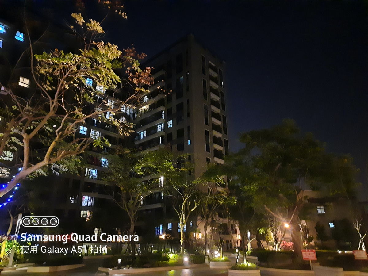 然後再看一下晚上拍攝的,先自動模式給大家看一下主鏡頭的日夜間自動切換,Galaxy A51 的調校真的相當的不錯,因為這畫面裡的樹夜晚其實很暗。