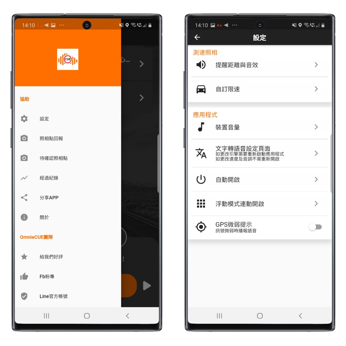 下圖右就是浮動模式,開啟 Google 地圖的同時,可以同步使用 Omnie CUE 來查看目前速度及提醒你測速照相,讓你毫無違和感的使用。