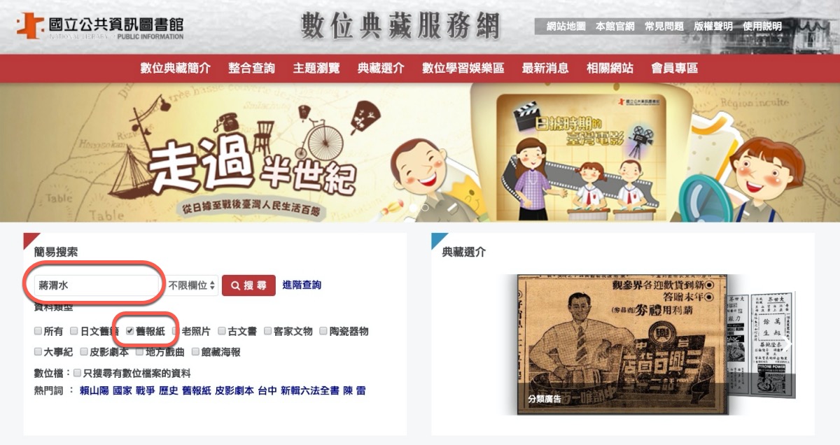 數位典藏服務網 - 舊報紙搜尋