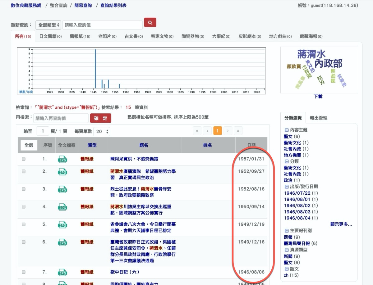 搜尋到的內容,都會用日期詳細的排序,也有標題可以看,你就可以慢慢的閱讀,進入歷史的世界。