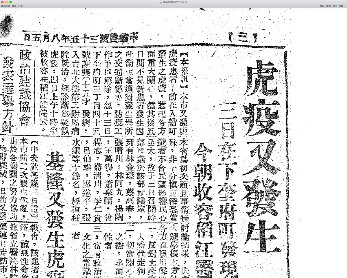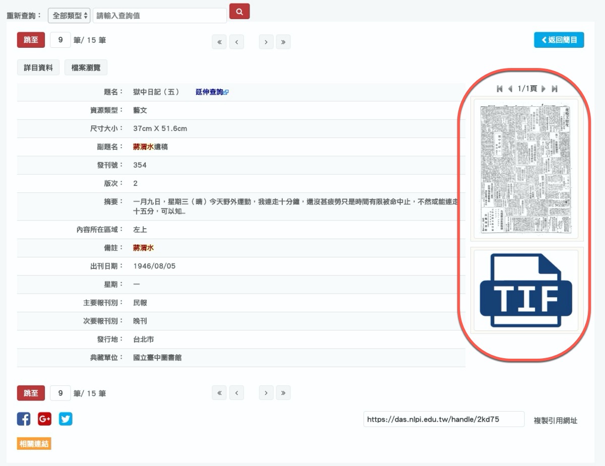 如果是沒有提供 TIF 檔案的,線上直接就可以放大瀏覽,解析度很夠,大家想看看以前的報紙都寫些什麼,就去搜尋看看吧,非常棒的數位典藏內容。
