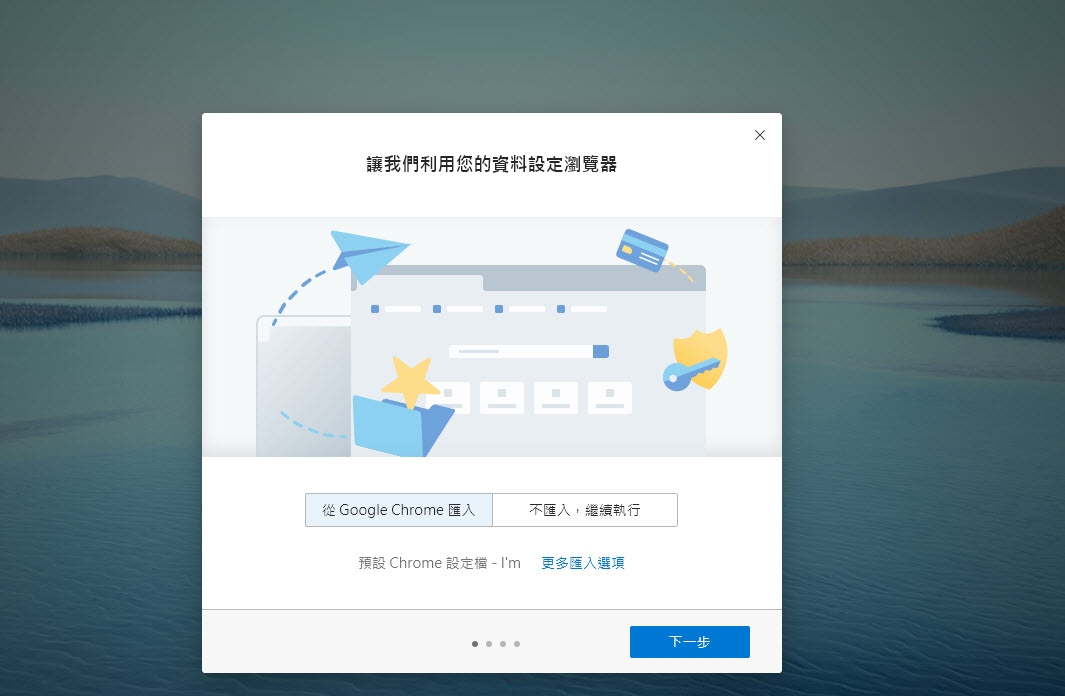 第一次安裝可以選擇匯入其他瀏覽器的資料。