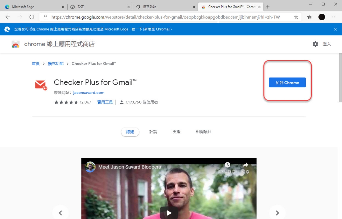 當你允許後,就會看到「加到 Chrome」這個按鈕了,非常簡單。