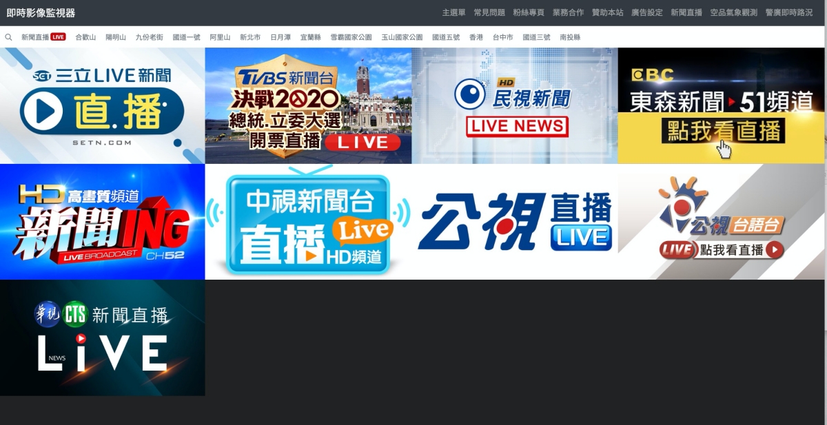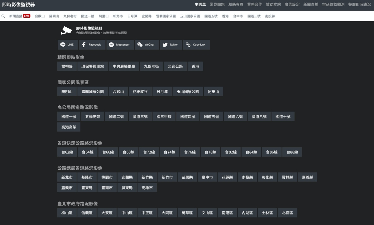 在這裡面還有個新聞直播,順便幫你整理了 YouTube 上的各個新聞直播台,但重點還是上面整理的各地即時影像,真的相當的實用。