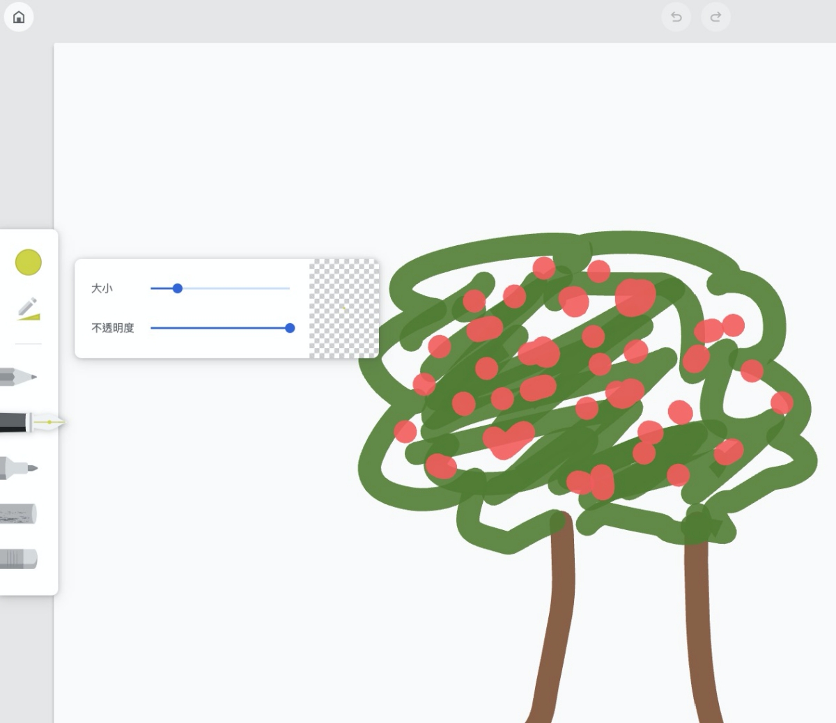 不過我發現我畫完後再重新打開畫的圖,就多了筆觸大小跟透明度可以選擇了,有點神奇吶。