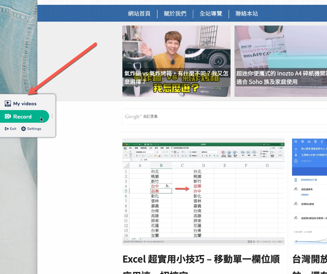 開啟攝影機就會像這樣,跟 Webcam 一起錄製畫面,更有教學的臨場感。