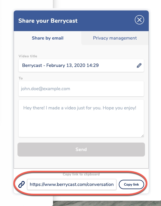 當你完成錄製時,就會跳出一個畫面,讓你可以直接 mail 給對方,或者直接複製連結給對方也可以。