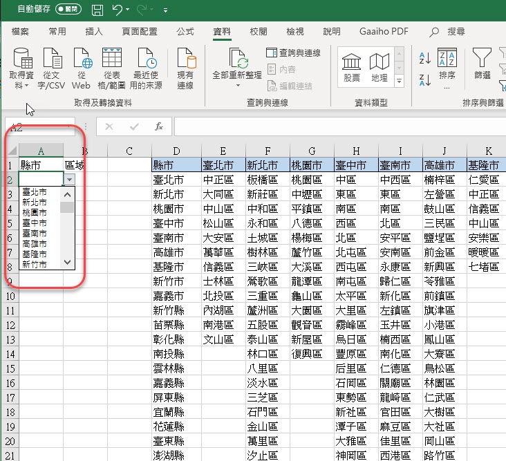 Excel 教學 - 將縣市與鄉鎮區做成多層級選單