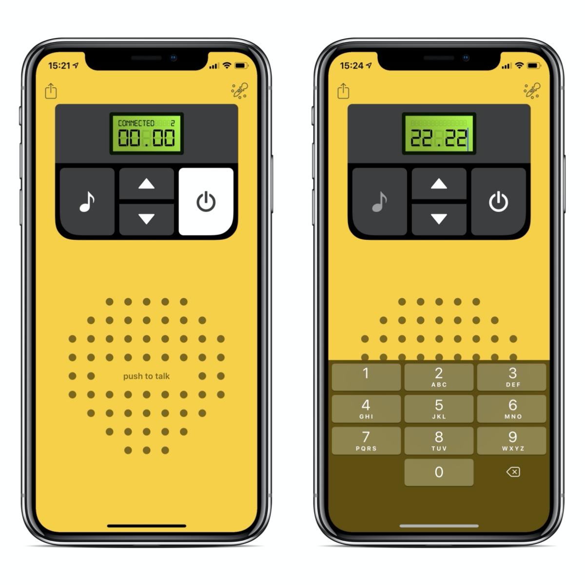 下載後直接使用,不用註冊,一進來就是使用畫面,主要就是選擇頻道,你可以按上跟下的圖示來調整,或直接點一下數字面板,輸入自己想要的頻道,從 00.00 到 99.99 共 1 萬個,確認 OK 就是按右下角的開機圖示就會連結,連接上後上方會出現 Connected 以及連線人數,所以你可以看到該頻道裡有沒有其他人在,阿湯測試了一下,從 00.00 開始的前幾個頻道很容易有一些陌生人無聊會在那出現,大概是跟我一樣的想法,應該會有人去 00.00 測試吧,如果要講話的話就按住螢幕下半部,就可以講話,沒按的話是只會聽到對方聲音。