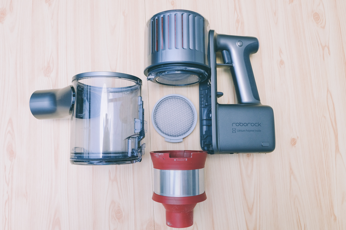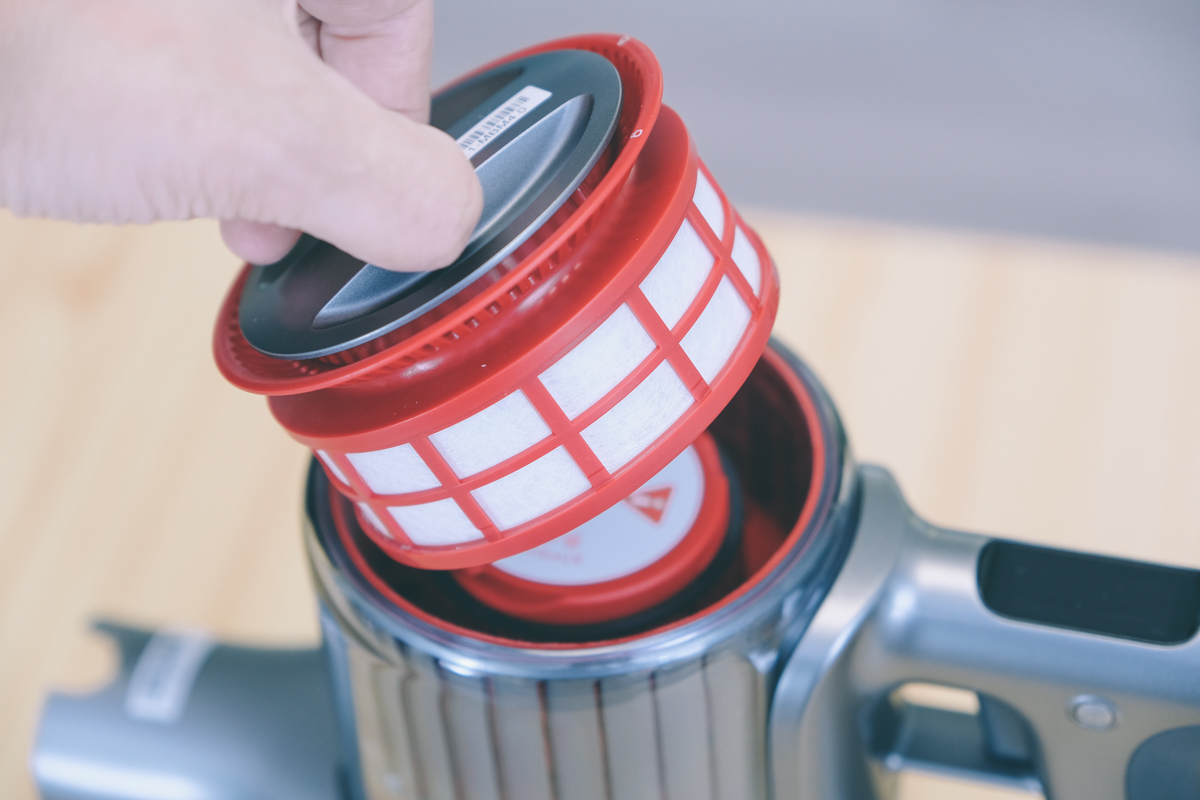 集塵筒拆卸後,連帶內部的不鏽鋼濾網、高密度棉濾網都可以拆卸清洗,整機其實能拆卸清洗的部份非常的多。