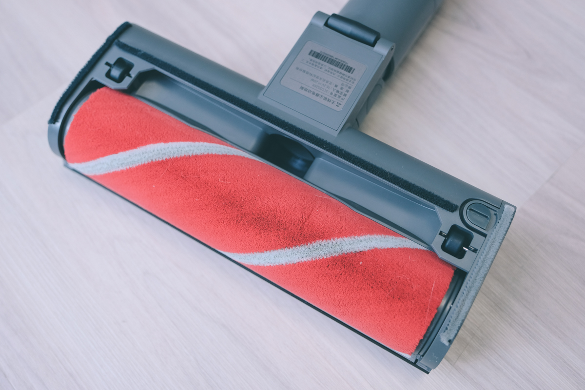 接下就是由阿湯這個萬年長工來為大家示範一下我們家的清潔,首先最基本款,就是接上軟絨滾筒刷把地板大範圍的全部吸過一次,不放過所有的角落。