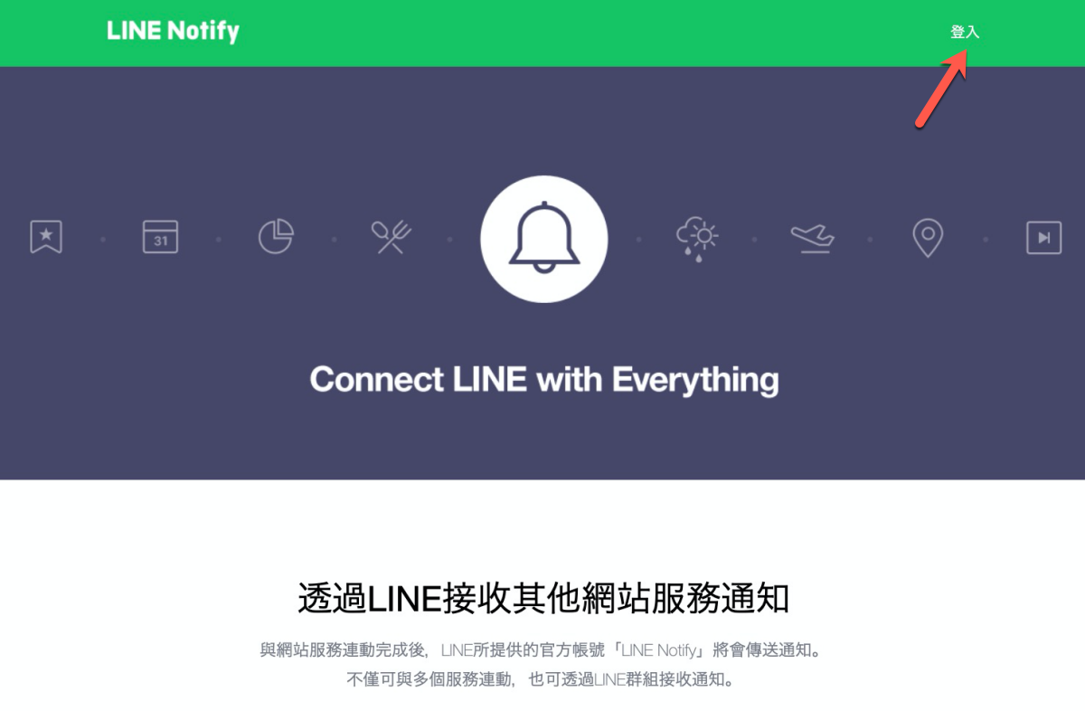 進入 LINE Notify 後右上角,登入你的 LINE 帳號。