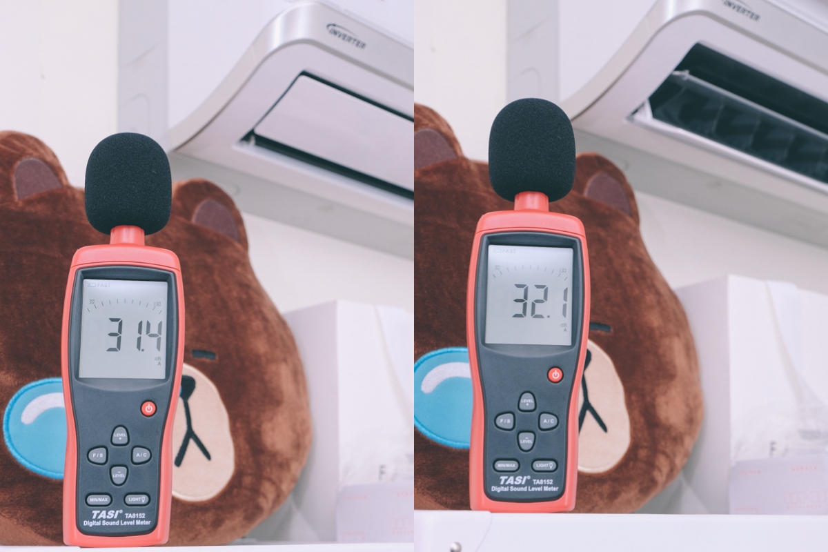 最後,其實我選擇這款 Panasonic CS-PX22FA2 冷暖變頻空調還有一個很重要的因素,就是超靜音,官方測試數據最安靜的運轉狀態下只有 19dB,阿湯有時工作會需要極高的專注力上在思維一些內容(我可不是單單是個在拍照寫文的部落客啊),我不像一般人一樣可以聽著音樂工作,反而是更需要安靜的環境來集中思考,所以即便是空調的轟轟轟聲都有時都會讓我覺得煩噪。我也實測了開關機下環境的噪音值各為多少,在關機未啟動的狀態下,我的書房測得 31.4 dB(其實是 30~33 浮動在跳),然後開機後測得 32.1dB(同樣也是 30~33 浮動),意謂著我有沒有開空調一點都都沒有影響到環境音量,有時安靜到我都在想到底有沒有在運轉啊,手伸過去是感受到有風的。
