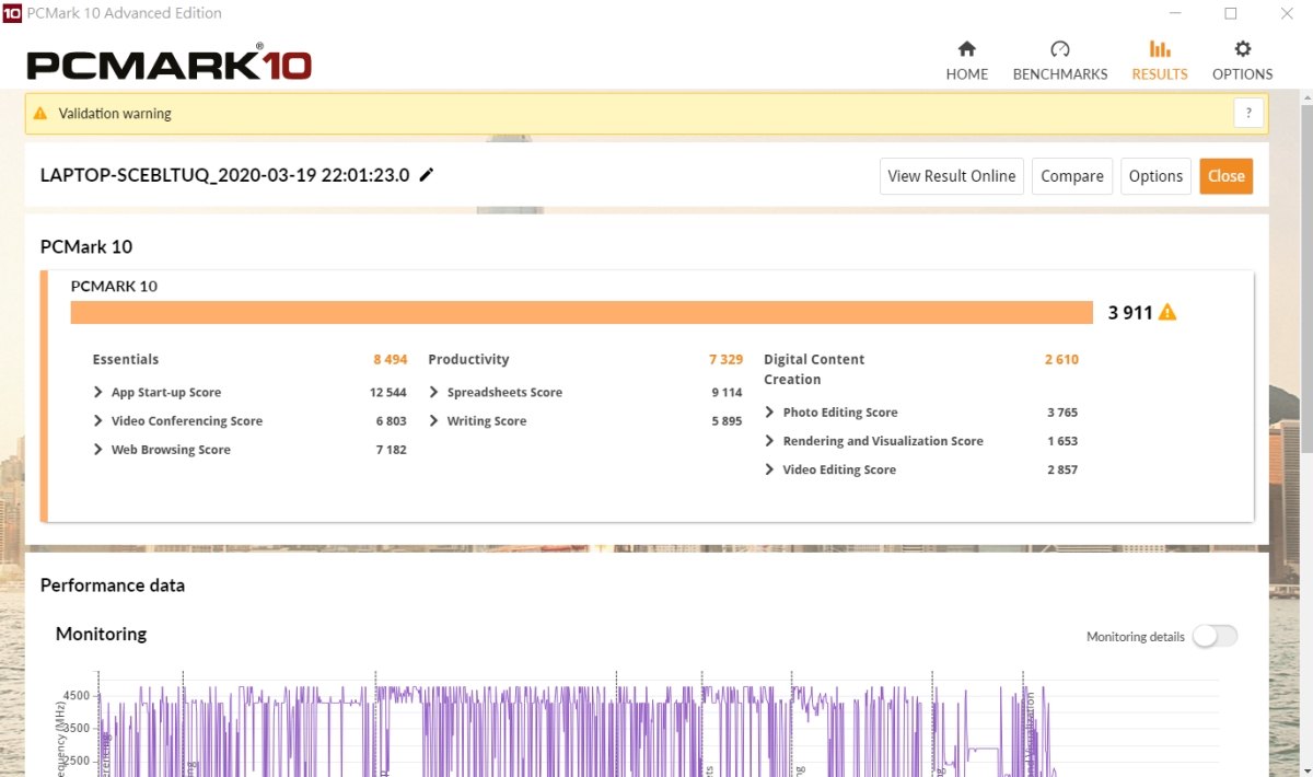 PCMark 10 綜合分數獲得 3911。