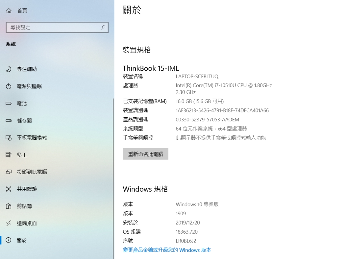- Lenovo ThinkBook 15 官方介紹:請點我前往