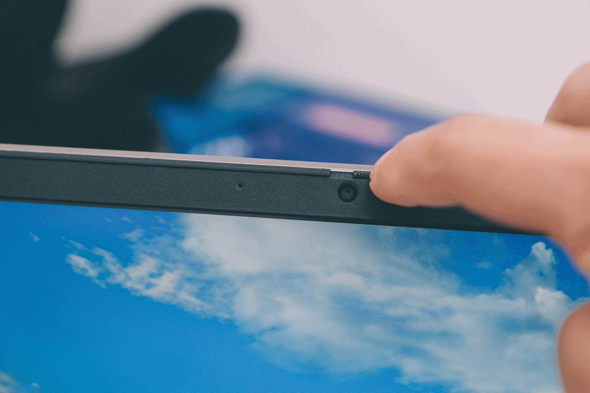 在 ThinkBook 15 上真的有非常多巧思設計,除了前面看到的隱藏 USB 埠之外,像是上方搭載的視訊鏡頭,很多人現在怕駭客或自己不小心誤開視訊,都會在鏡頭處黏上紙膠帶,但在 ThinkBook 15 上就沒這必要,自帶 ThinkShutter 鏡頭蓋讓你可以直接把鏡頭蓋起來,保有絕對隱私權!