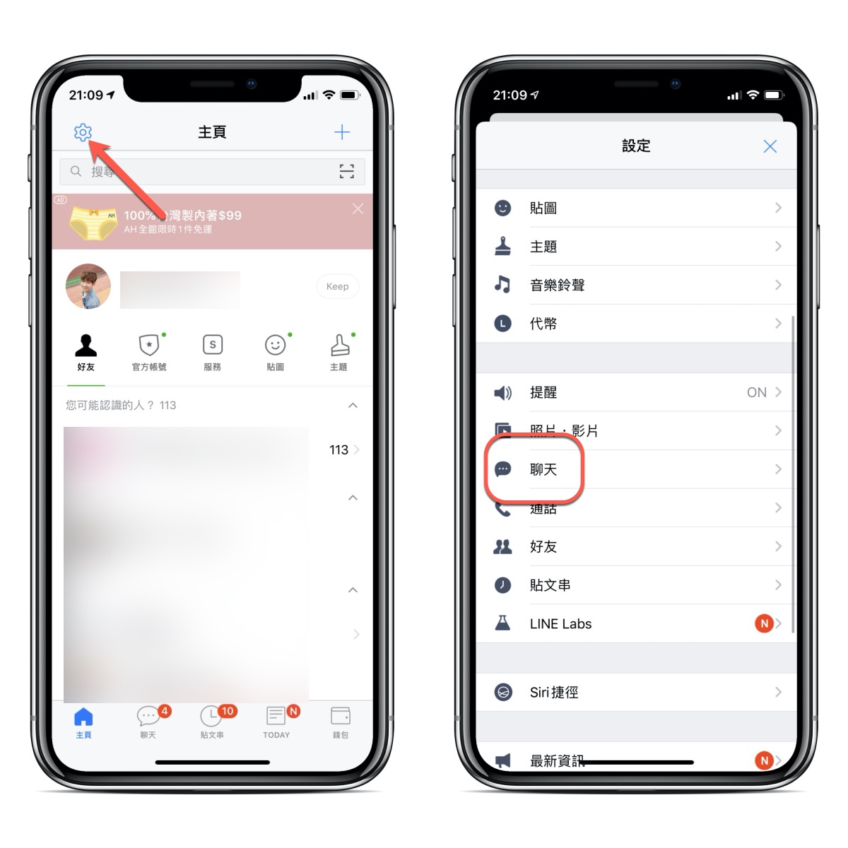 要自己手動去打開自動備份的功能,首先在首頁左上角進入設定 > 聊天。