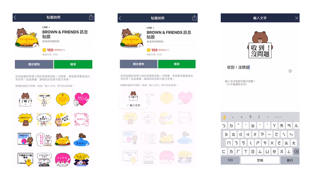 4. 下載貼圖,到聊天室更改文字,開始玩!(雖然可以支援到 100 個字,但是如果字數太多,字會偏小反而不好閱讀,因此建議訊息長度設在 20 字左右唷)
