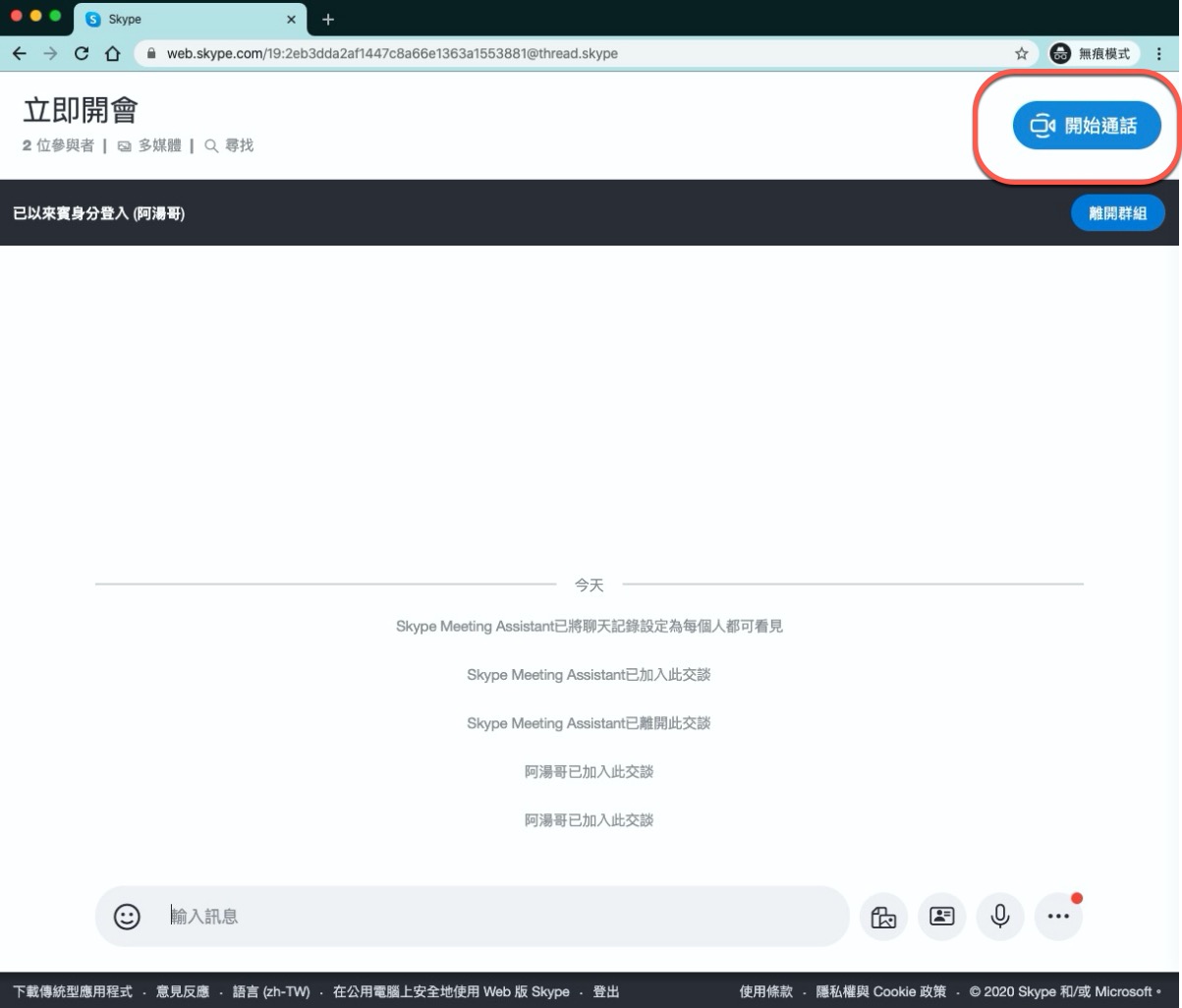 註:需使用 Google Chrome 瀏覽器或微軟自家的 Microsoft Edge 瀏覽器才能開啟,另外手機開啟的話只能安裝 Skype 或者有可能會開啟不了。