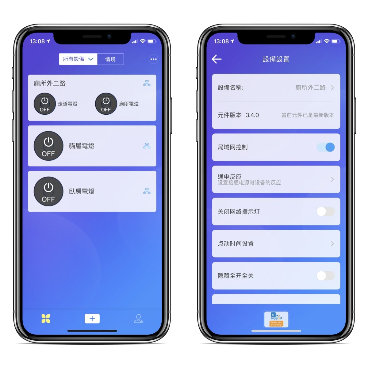 原本改用博聯的智慧開關也玩了很久一段時間,不過由於是射頻控制,不論是串接到 Homekit 或 Google Assistant 都會有一個問題,比如,我透過 Siri 或 Google 去控制開關時,在 APP 裡看到的狀態會是跟隨著你控制的方式去變化,但是當你是去按壓實體開關時,APP 裡狀態不會變動,比如你是關閉電燈,但 APP 裡的狀態可能還是開著,這是因為射頻開關他只有單向發送訊號的關係。