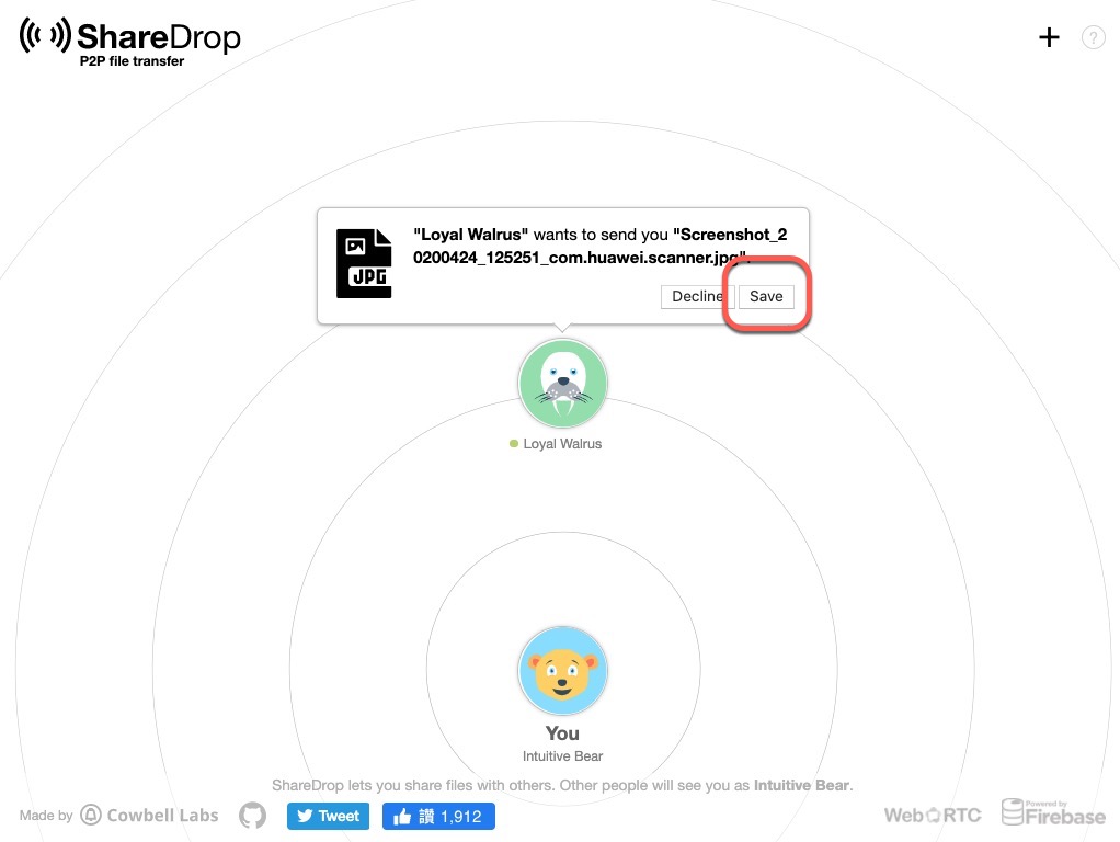 接收方,只要按下 Save 就會把檔案儲存下來囉。
