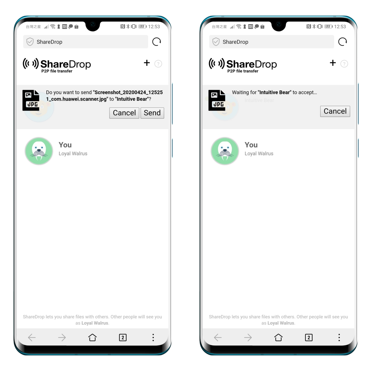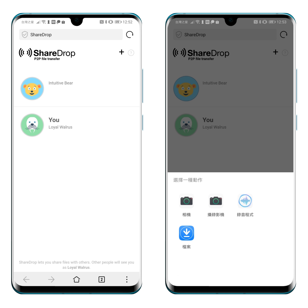 在完成連線時,其實雙方都是可以互相點擊頭像傳送檔案的,像我這樣電腦要反過來傳檔給手機也完全沒問題,而且沒有系統、設備的問題,全部通用,只要能開瀏覽器基本上都可以使用,以後傳檔只要把 ShareDrop 加入書籤就好。