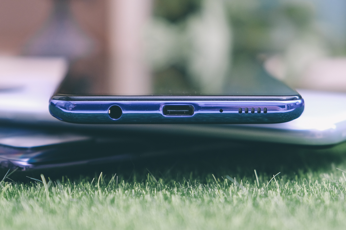 底部為 3.5mm 耳麥孔、USB -C 充電埠、降噪麥克風及揚聲器,目前還有一些萬元以下的手機採用 microUSB 連接埠相當可惜,USB -C 我覺得已經是趨勢了,而且更加方便。