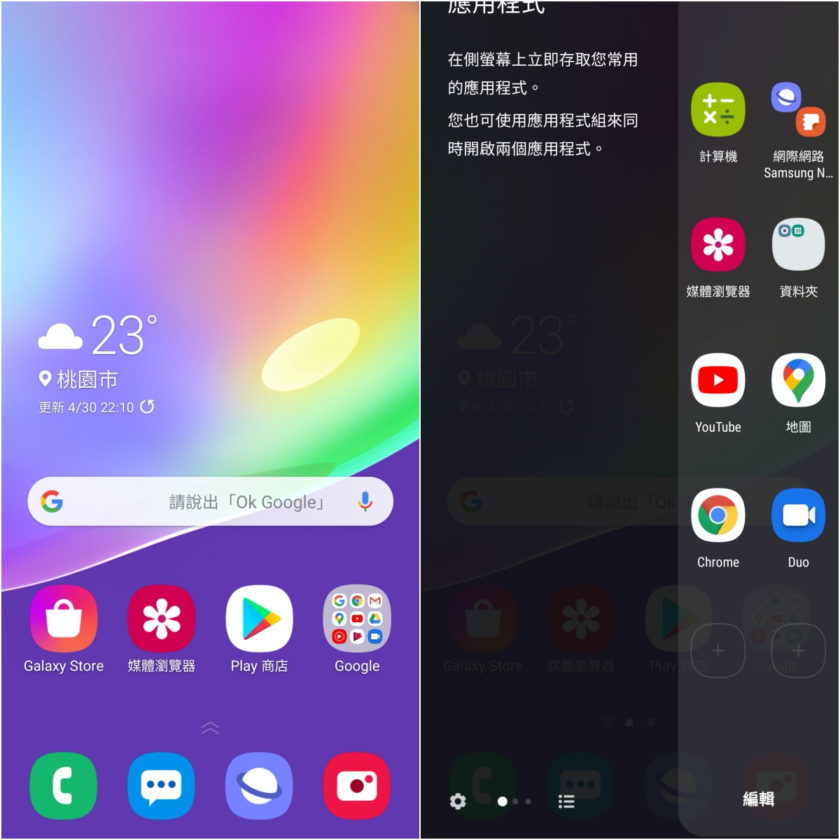 Galaxy A31 採用 Android 10,加上三星自家的介面及設計,加入了更多實用、便利的功能,像是原本最開始在旗艦機型下才有的側螢幕面板,可以將常用的應用程式放在這裡來快速開啟,或是將二個應用程式加入為群組,同時幫你開啟多個應用程式,比起在桌面放滿 APP 來的更加方便。