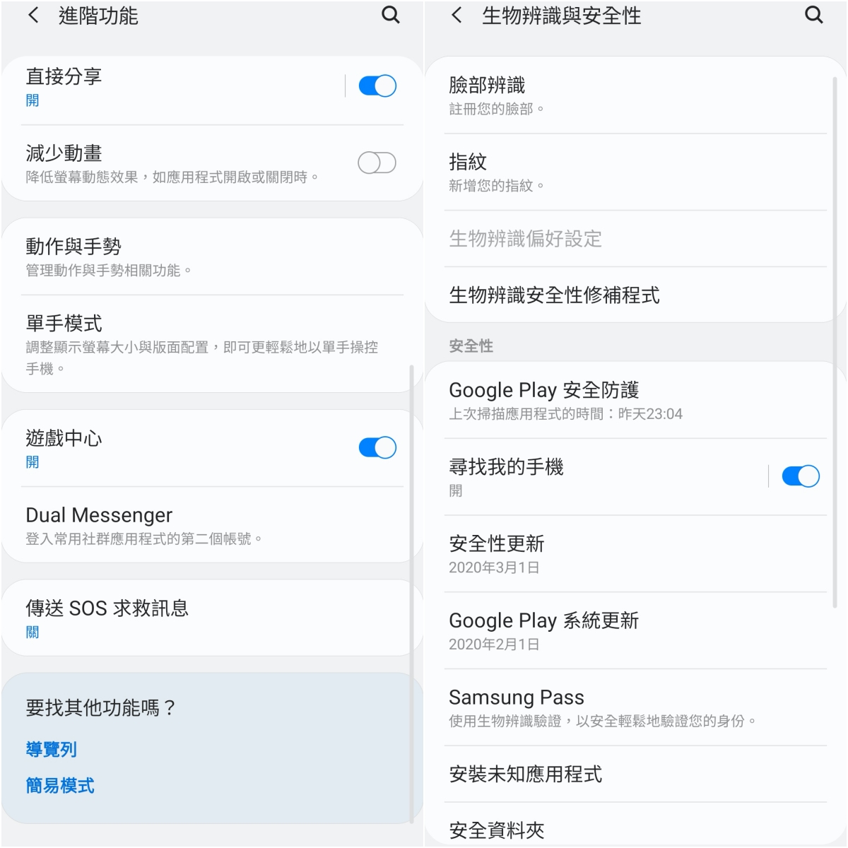 安全性的部份支援臉部及指紋辨識,並有 NFC 可以使用感應式行動支付。