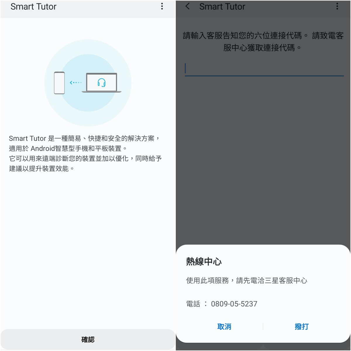 Samsung 的智慧型手機我覺得有個很棒的功能就是 Smart Tutor,這功能是當你的手機有問題詢問客服時,如果是操作上或其他相關問題,可以透過這個功能產生六位連接代碼,讓客服直接遠端幫你診斷手機,如果只是設定上的問題,就不需要再跑一次維修中心,非常的方便。