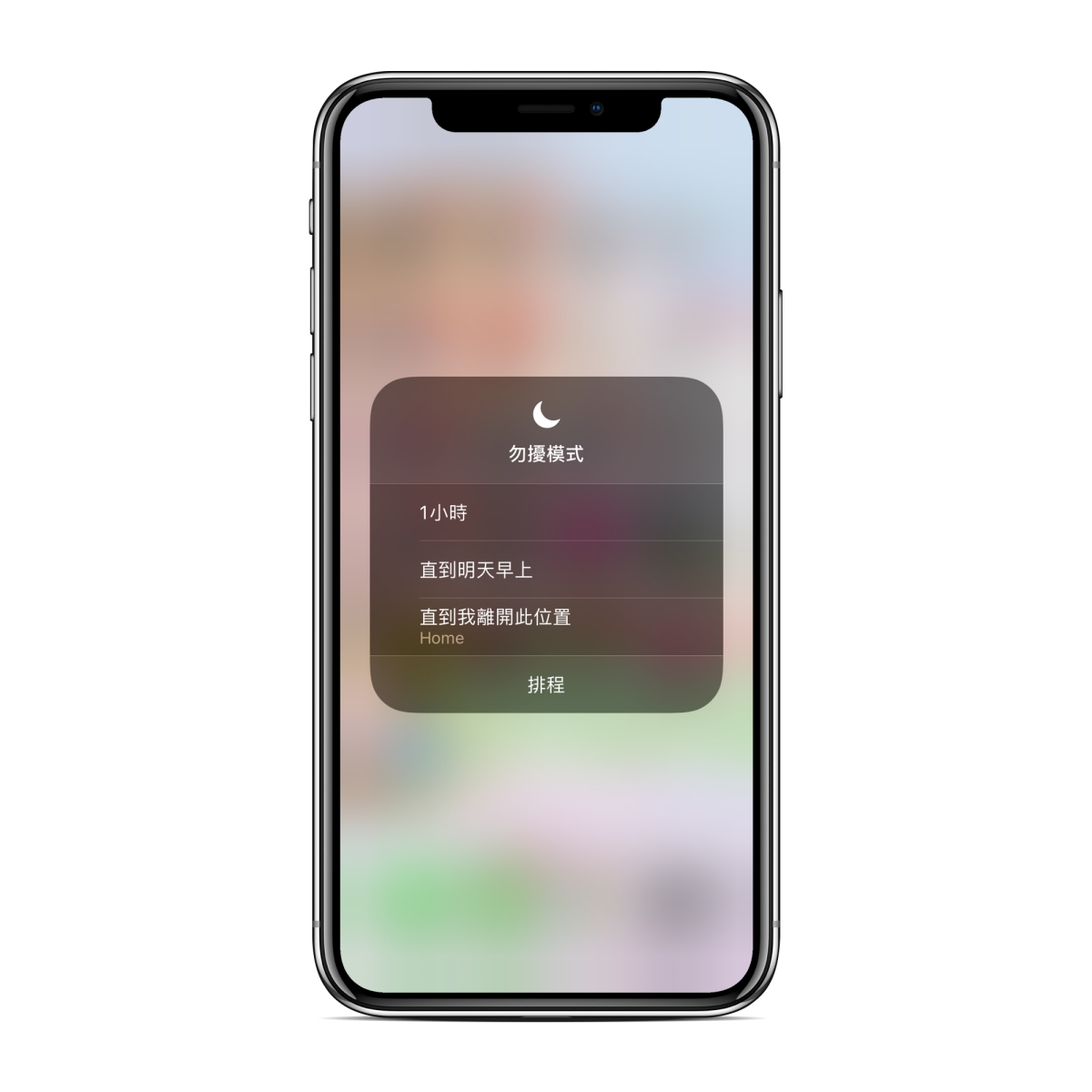 首先是勿擾模式,原本只有開跟關,但如果你是長按勿擾模式的圖示,就會有三個可以選擇,一小時、到明早,或是直到離開現在位置。