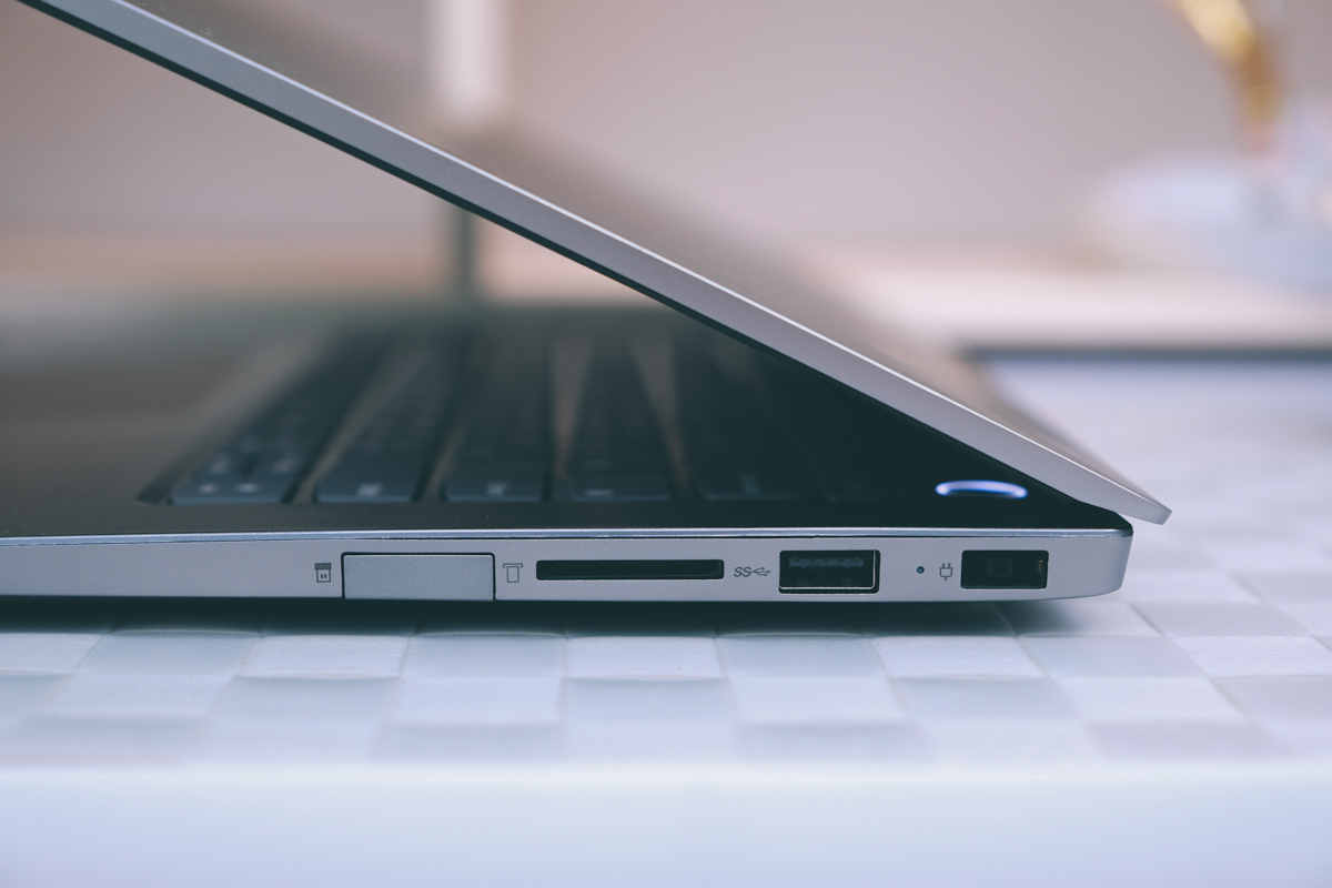 這個隱藏式的 USB 槽只要推一下就可以打開,可以將常用的 USB(迷你型的)或滑鼠的無線接收器插入後關起來,就不會凸一個在筆電外緣,工作到一半要放進包包也不用先拔除,是非常貼心的一個設計。
